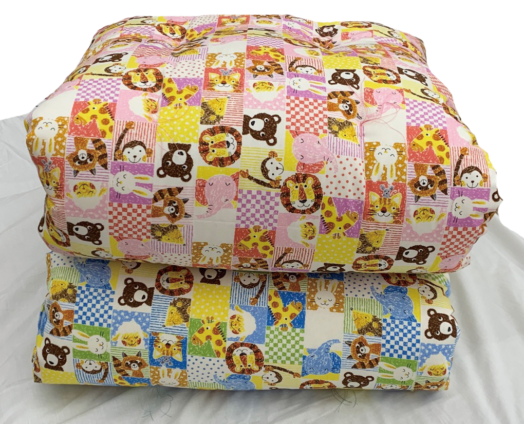 A.園に対応した各種サイズの敷ふとんを販売いたしております。また、生地(綿100%や綿混素材)をお持ちいただければ、敷ふとん・専用カバーなどもお作りいたします。
